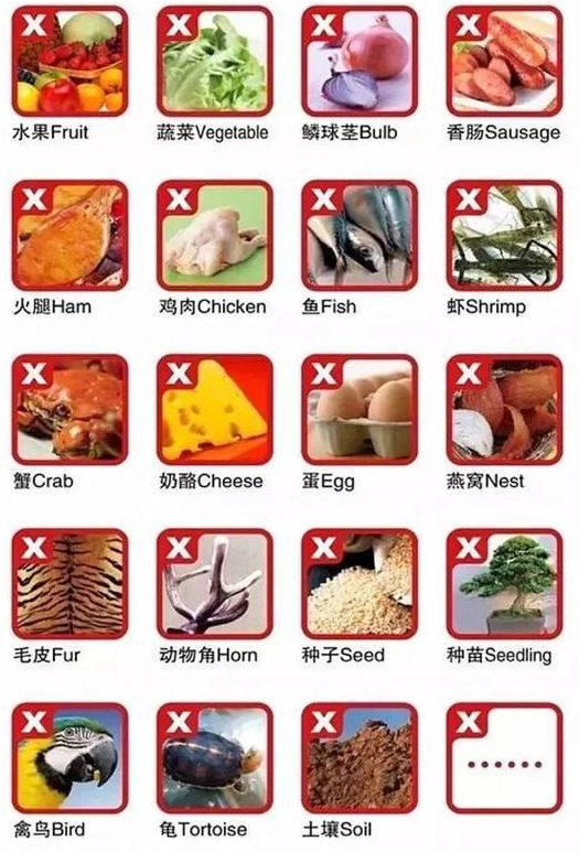 - 國家禁止進境的其他動植物、動植物產品和其他檢疫物。