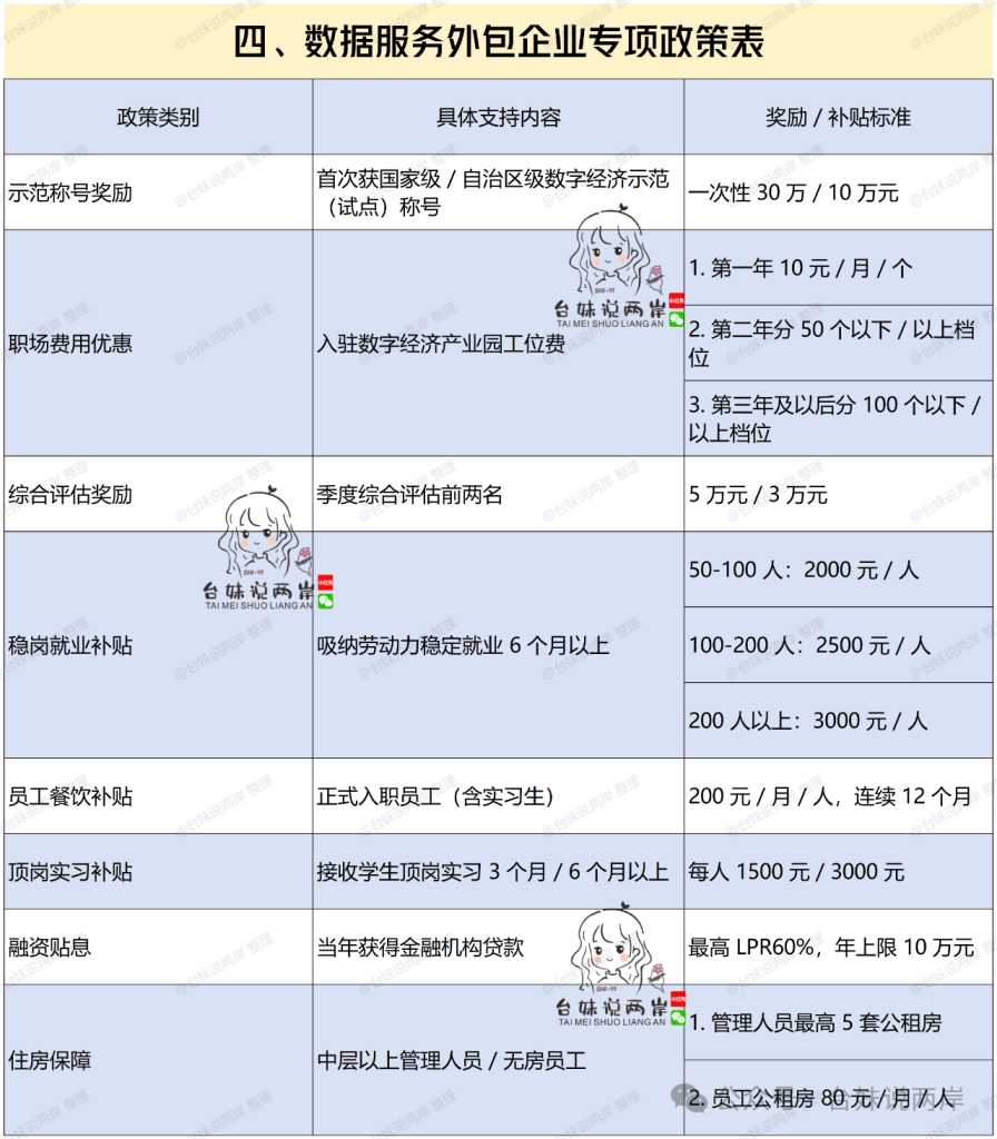 涵蓋資金支持、要素保障、稅收優惠、服務保障四大核心板塊,同時包含資料服務外包企業專項政策,