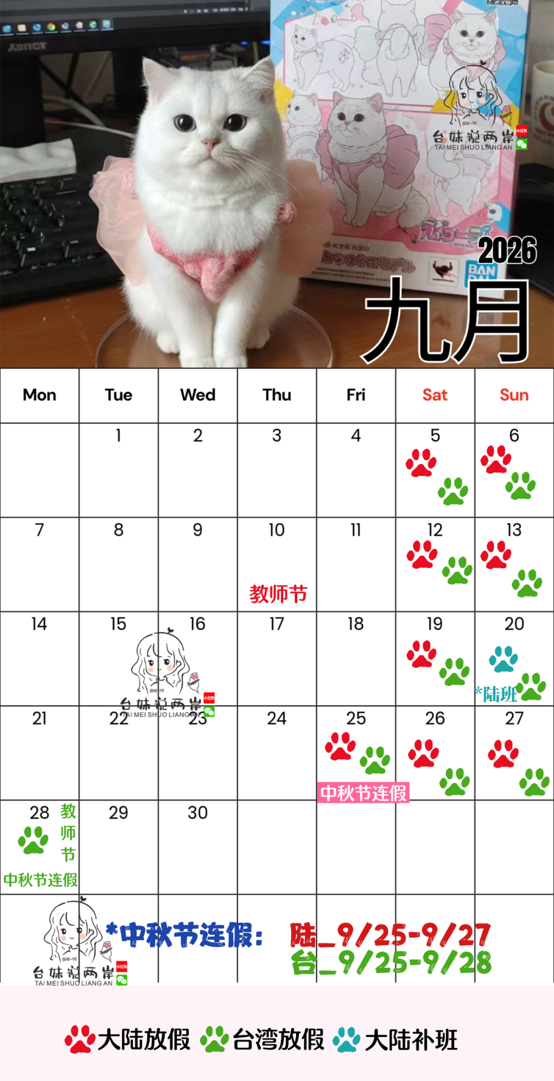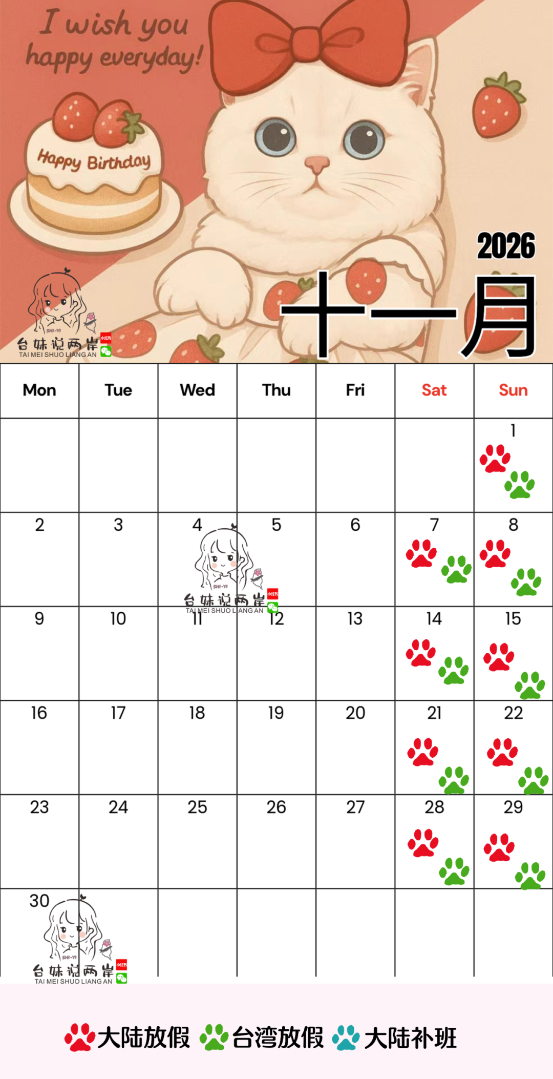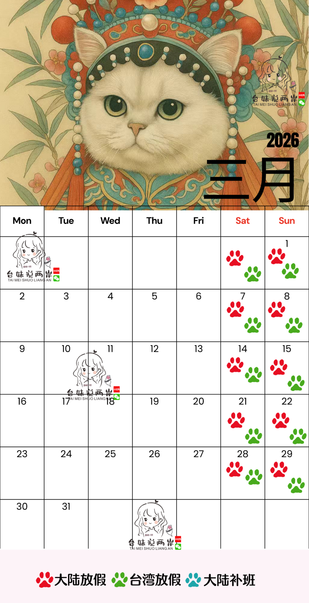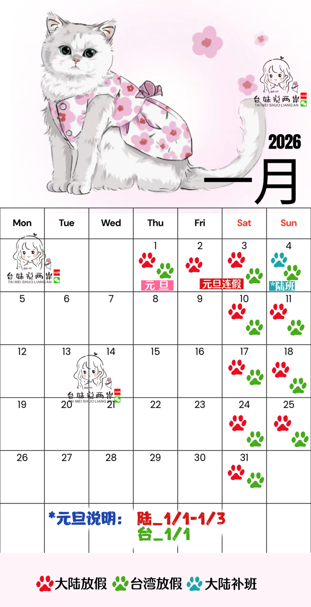 本周Top 5 2026國補補貼明細+核心要點 在陸生活 小壹 - 2026 年 1 月 1 日 2026年治安管理新規核心要點解讀 在陸生活 小壹 - 2026 年 1 月 1 日 台北捷運中山站惡性事件!男子持刀隨機砍人並投擲煙霧彈 在台生活 小壹 - 2025 年 12 月 19 日 最新反詐寶典16種詐騙套路+案例,轉發守護全家錢袋! 在陸生活 小壹 - 2025 年 12 月 16 日 1月1日起,未牽繩犬隻傷人,最高罰1000元+拘10天,合規養犬刻不容緩! 在陸生活 小壹 - 2025 年 12 月 16 日 其他相關文章 行動電源可帶上飛機嗎?2025最新登機規定 大陸旅遊攻略 冬季想玩又怕冷的寶子們,這6個小眾避寒天堂,人少便宜又好逛,還等什麼,直接衝! 大陸旅遊攻略 “七折車票”“低價酒店積分”?二手平台積分交易,當心陷阱! 在陸生活 2025-12-31 跨年演唱會指南:從廣州到台北,熱門場次一鍵收藏 在陸生活 《燕雲十六聲》和白石山景區聯動正式官宣!這麼近,那麼美,界碑到河北! 大陸旅遊攻略 不能帶入境|返陸 大陸旅遊攻略 2026年法定假日安排~公家單位這幾天沒上班 台灣旅遊攻略大陸旅遊攻略 Author: 小壹 2025 年 11 月 14 日 Less than 1 min.read FacebookTwitterPinterestWhatsApp 馬上又到年底了,又要開始倒數過年了 為了方便大家好請假,好安排假期 今年依然整理了行事曆 把兩岸放假日做在一起 提供大家可以提前規劃好行程跟買機票 ★兩岸婚姻、子女相關業務點這裡→諮詢時宜 ★旅遊、機票住宿相關業務點這裡→諮詢小壹 此文章圖文版權為微信公眾號:台妹說兩岸所有,本網站已取得授權,原創不易,分享文章請標註來源出處,謝謝~ Tags2026放假指南大陸旅遊旅遊安排旅遊找小壹旅遊攻略海外旅遊 上一篇文章常用LINE轉帳用戶注意!iPASS MONEY與LINE分家 年底全數移出下一篇文章微信綁定台灣VISA卡 Popular Articles 2026國補補貼明細+核心要點 2026年治安管理新規核心要點解讀 台北捷運中山站惡性事件!男子持刀隨機砍人並投擲煙霧彈 最新反詐寶典16種詐騙套路+案例,轉發守護全家錢袋! 1月1日起,未牽繩犬隻傷人,最高罰1000元+拘10天,合規養犬刻不容緩!
