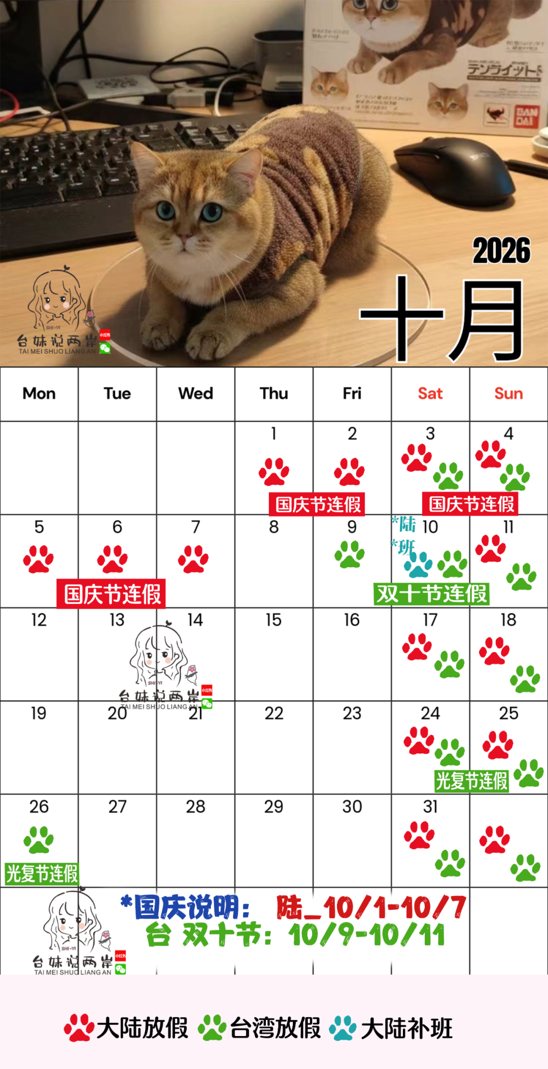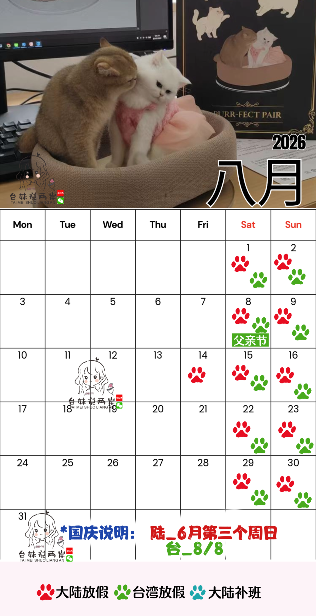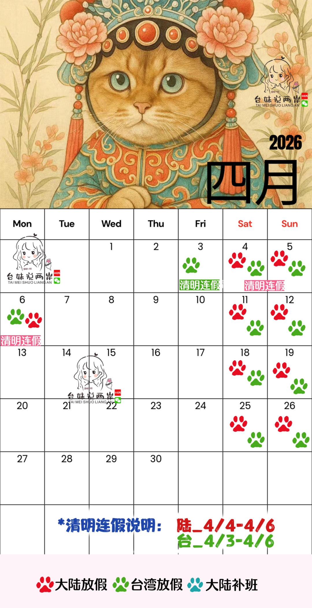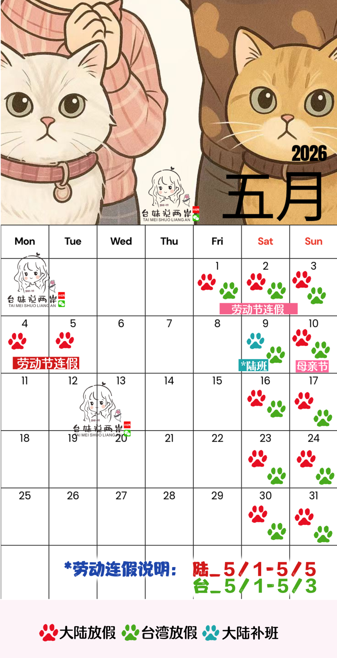 本周Top 5 2026國補補貼明細+核心要點 在陸生活 小壹 - 2026 年 1 月 1 日 2026年治安管理新規核心要點解讀 在陸生活 小壹 - 2026 年 1 月 1 日 台北捷運中山站惡性事件!男子持刀隨機砍人並投擲煙霧彈 在台生活 小壹 - 2025 年 12 月 19 日 最新反詐寶典16種詐騙套路+案例,轉發守護全家錢袋! 在陸生活 小壹 - 2025 年 12 月 16 日 1月1日起,未牽繩犬隻傷人,最高罰1000元+拘10天,合規養犬刻不容緩! 在陸生活 小壹 - 2025 年 12 月 16 日 其他相關文章 行動電源可帶上飛機嗎?2025最新登機規定 大陸旅遊攻略 冬季想玩又怕冷的寶子們,這6個小眾避寒天堂,人少便宜又好逛,還等什麼,直接衝! 大陸旅遊攻略 “七折車票”“低價酒店積分”?二手平台積分交易,當心陷阱! 在陸生活 2025-12-31 跨年演唱會指南:從廣州到台北,熱門場次一鍵收藏 在陸生活 《燕雲十六聲》和白石山景區聯動正式官宣!這麼近,那麼美,界碑到河北! 大陸旅遊攻略 不能帶入境|返陸 大陸旅遊攻略 2026年法定假日安排~公家單位這幾天沒上班 台灣旅遊攻略大陸旅遊攻略 Author: 小壹 2025 年 11 月 14 日 Less than 1 min.read FacebookTwitterPinterestWhatsApp 馬上又到年底了,又要開始倒數過年了 為了方便大家好請假,好安排假期 今年依然整理了行事曆 把兩岸放假日做在一起 提供大家可以提前規劃好行程跟買機票 ★兩岸婚姻、子女相關業務點這裡→諮詢時宜 ★旅遊、機票住宿相關業務點這裡→諮詢小壹 此文章圖文版權為微信公眾號:台妹說兩岸所有,本網站已取得授權,原創不易,分享文章請標註來源出處,謝謝~ Tags2026放假指南大陸旅遊旅遊安排旅遊找小壹旅遊攻略海外旅遊 上一篇文章常用LINE轉帳用戶注意!iPASS MONEY與LINE分家 年底全數移出下一篇文章微信綁定台灣VISA卡 Popular Articles 2026國補補貼明細+核心要點 2026年治安管理新規核心要點解讀 台北捷運中山站惡性事件!男子持刀隨機砍人並投擲煙霧彈 最新反詐寶典16種詐騙套路+案例,轉發守護全家錢袋! 1月1日起,未牽繩犬隻傷人,最高罰1000元+拘10天,合規養犬刻不容緩!