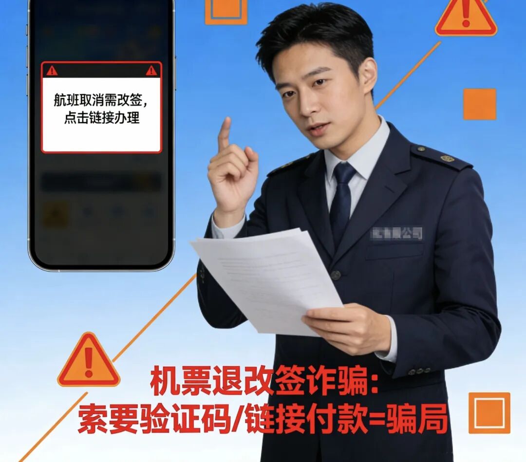 冒充航司/旅行社客服,報航班資訊獲信任,以「延誤取消理賠」誘點鏈接、下軟體,盜轉資金。
