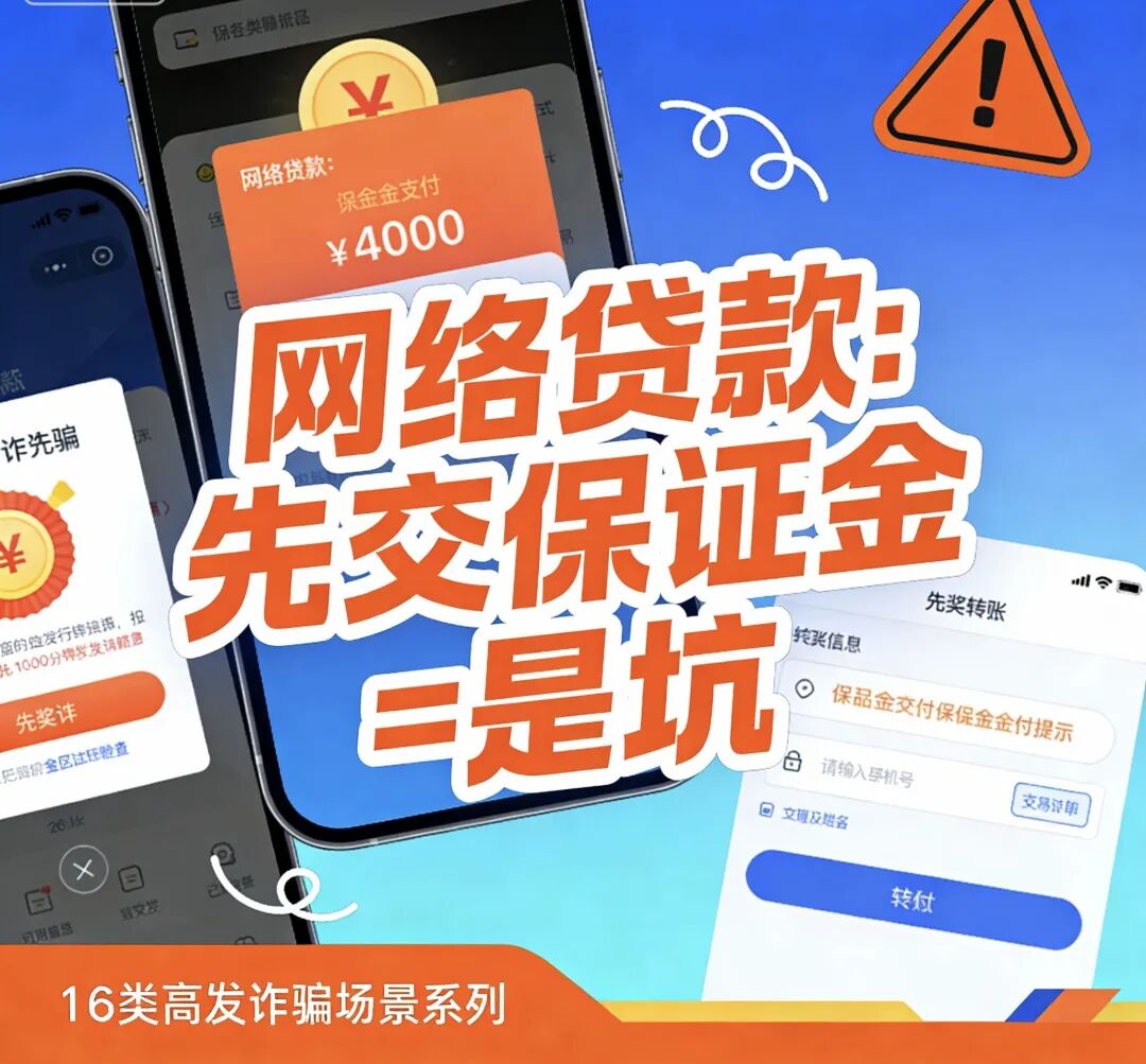 以「無抵押、低利息、秒放款」為噱頭,誘申請貸款,再以「解凍費、保證金」為由索要轉帳,全程不放款。