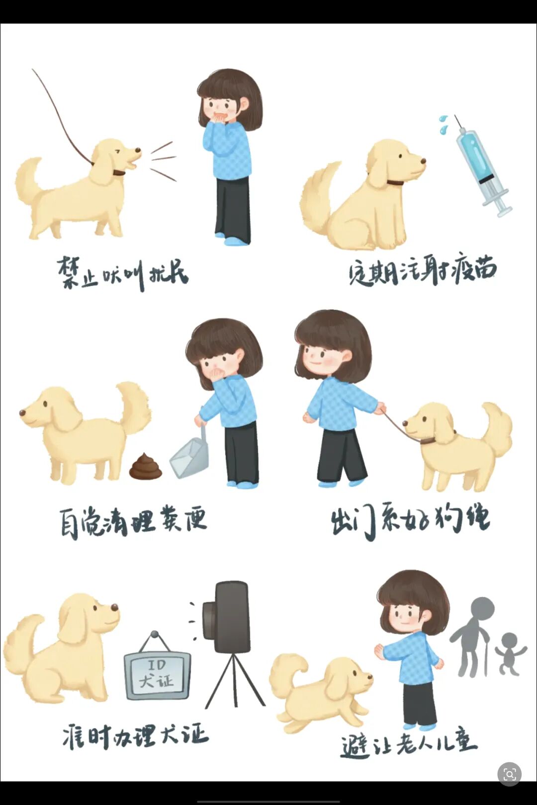 行為規範:主動避讓老人、孕婦、兒童,避免在禁遛區(學校、醫院等)遛犬,深夜控制犬吠避免擾民。